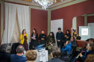 (Il Mecenate Attivatore del Premio, Andrea Brandonisio di Gioiella, insieme all’artista vincitrice Luisa Valenzano, al comitato scientifico e allo staff di Nartist)